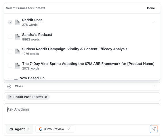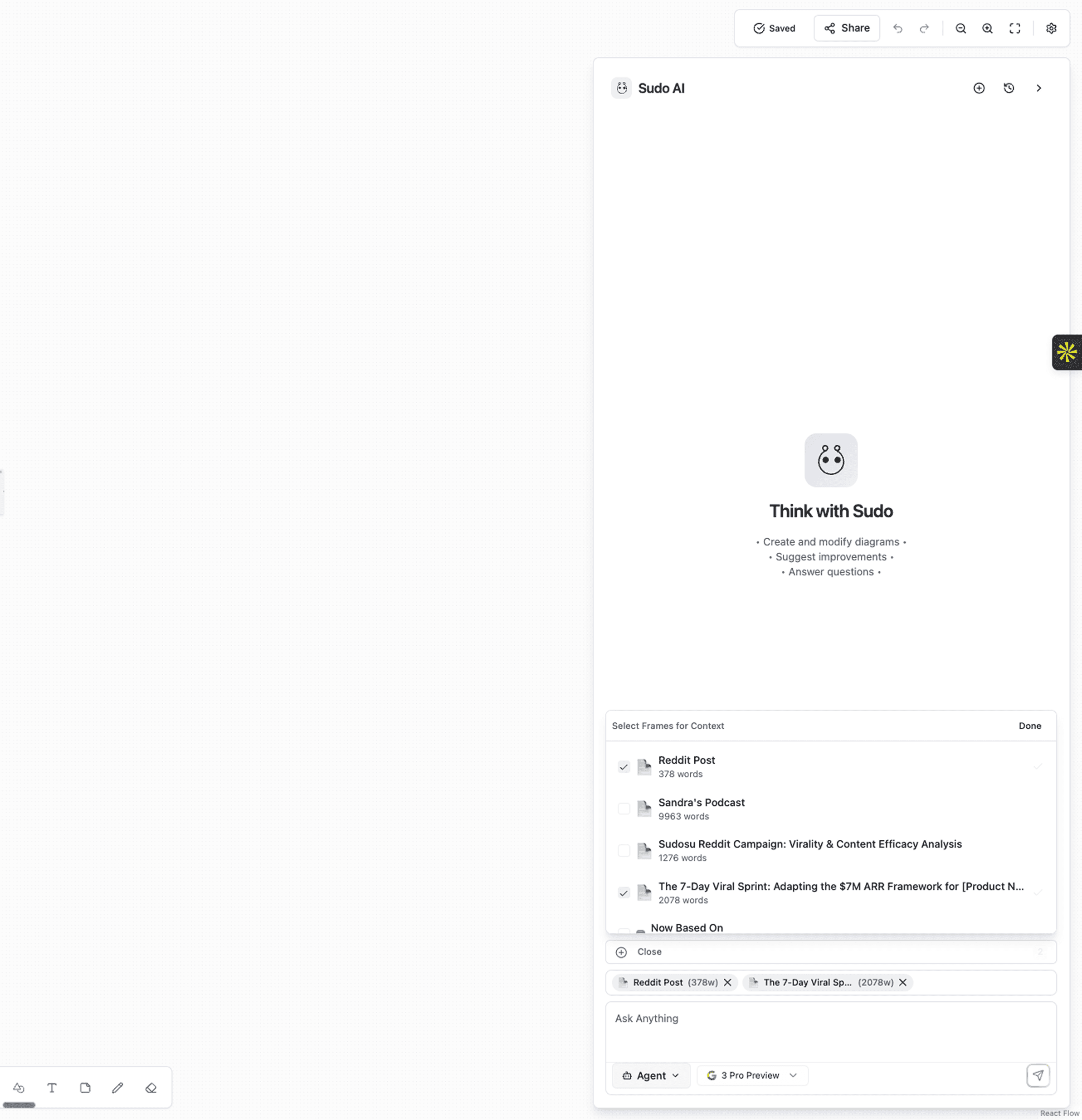 Agents think across everything on your canvas.